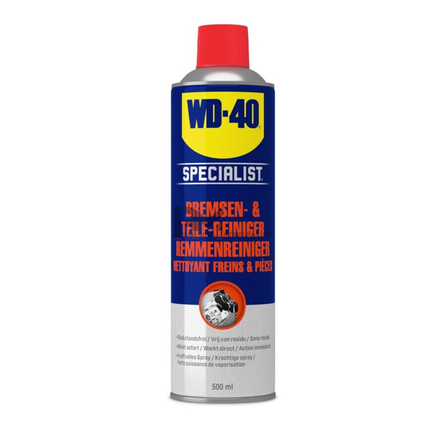 WD-40 SPECIALIST Bremsenreiniger entfernt Fett, Öl, Schmutz und Ablagerungen von Bremsen, Kupplungs-, Getriebe- und anderen Bauteilen. Die Formel wirkt sofort, trocknet schnell ohne Rückstände zu hinterlassen und ist auf den meisten Oberflächen anwendbar.